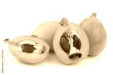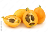 kumquats(Citrus japonica) and a cut one on a white background
