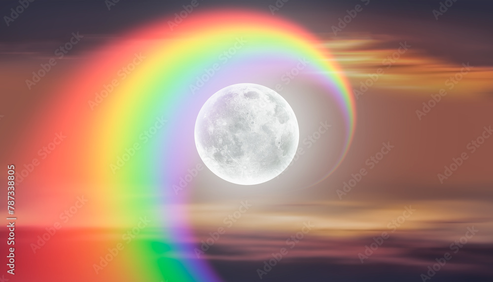 Full moon with rainbow in the background "Elements of this image furnished by NASA"