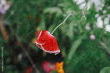 Beautiful poppies blooming in english cottage garden. Close up of red poppy flower with rain drops. Floral wallpaper. Homestead lifestyle and wild natural garden