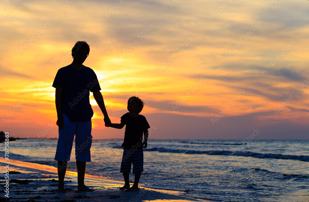 father and son holding hands at sunset