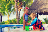 little boy and toddler girl playing in swimming pool