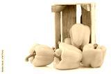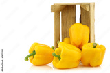 yellow bell peppers (capsicum) a in a wooden crate