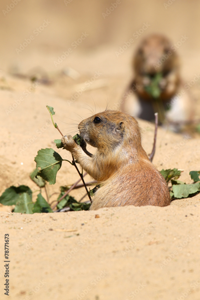 cute little prairie dog eating leaves