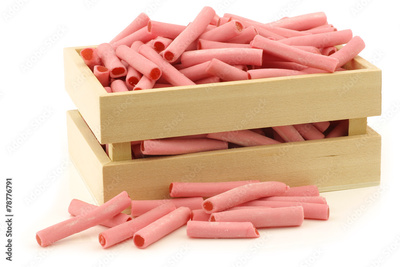 pink candy sticks filled with strawberry jam in a wooden box