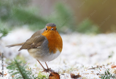 robin (Erithacus rubecula) in a winter garden