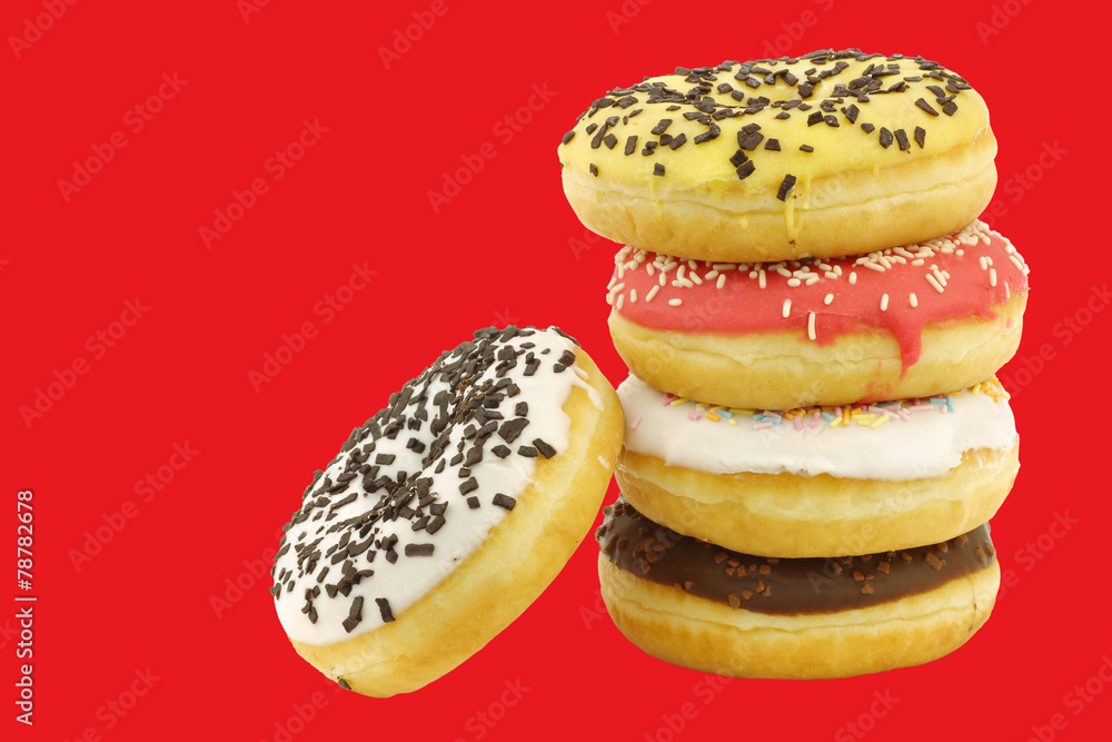 stacked assorted colorful glazed donuts with sprinkles