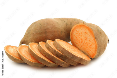 cut sweet potato on a white background