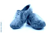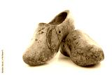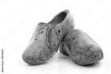 pair of traditional Dutch yellow wooden shoes seen from above o