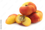 flat nectarines and a cut one on a white background