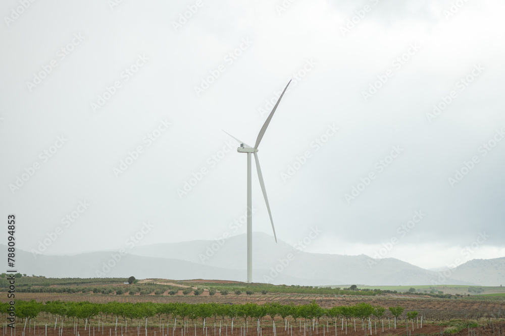 Wind turbine against an overcast sky