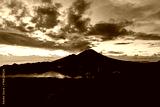 Breathtaking sunrise over Abang mountain, view from Batur volcano and Batur lake, Bali, Indonesia