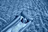 Child in swimming pool. Having fun on vacation at the hotel pool. Colorful vacation concept.