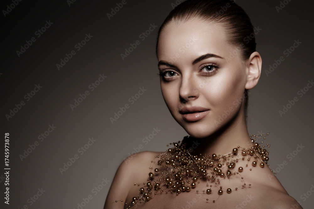 Caucasian dark-haired woman is sitting at the stairs in cozy