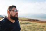 Close-up portrait of a serious plus-size man