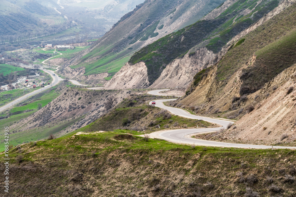 Mountain serpentine road in the Issyk-Ata gorge in Kyrgyzstan.