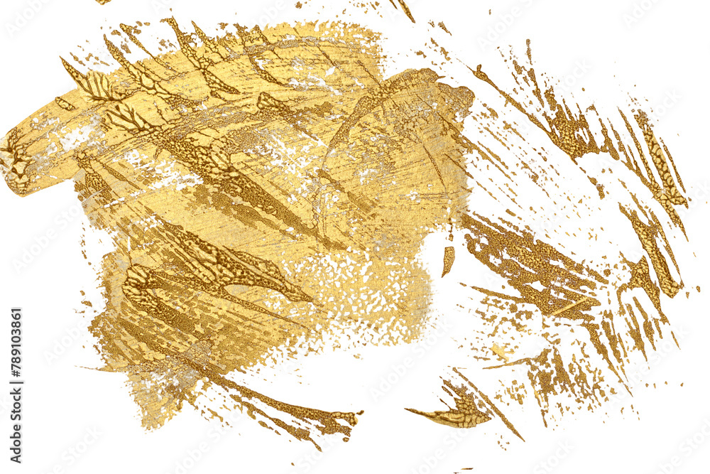 Golden paint brushstroke on white, dynamic for banners and modern art.