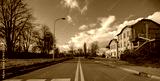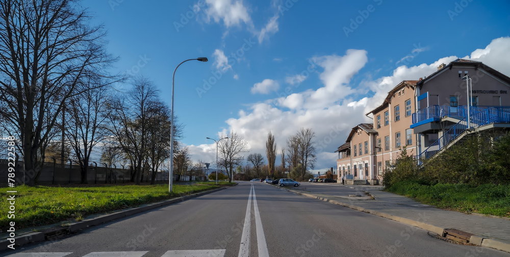 Zabytkowy dworzec kolejowy w Ostrowcu Świętokrzyskim . Prawie stu czterdziestoletni budynek stacji pod pięknym, pogodnym jesiennym ,błękitnym niebem. Na budynku stacji znajdują się napisy z nazwą .