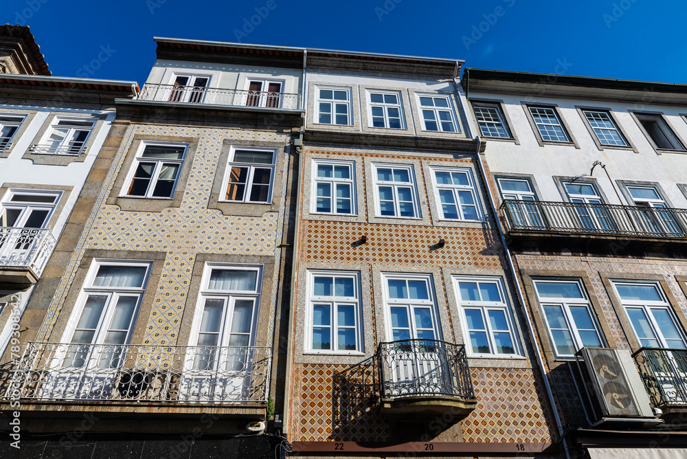 Facade of old classic buildings, Braga, Portugal