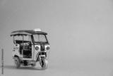 Model Toy tuk tuk isolated on blue background. Thai traditional taxi in Bangkok Thailand. Souvenir