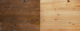 Alter Holzfussboden und abgeschliffener Holzfussboden im Kontrast