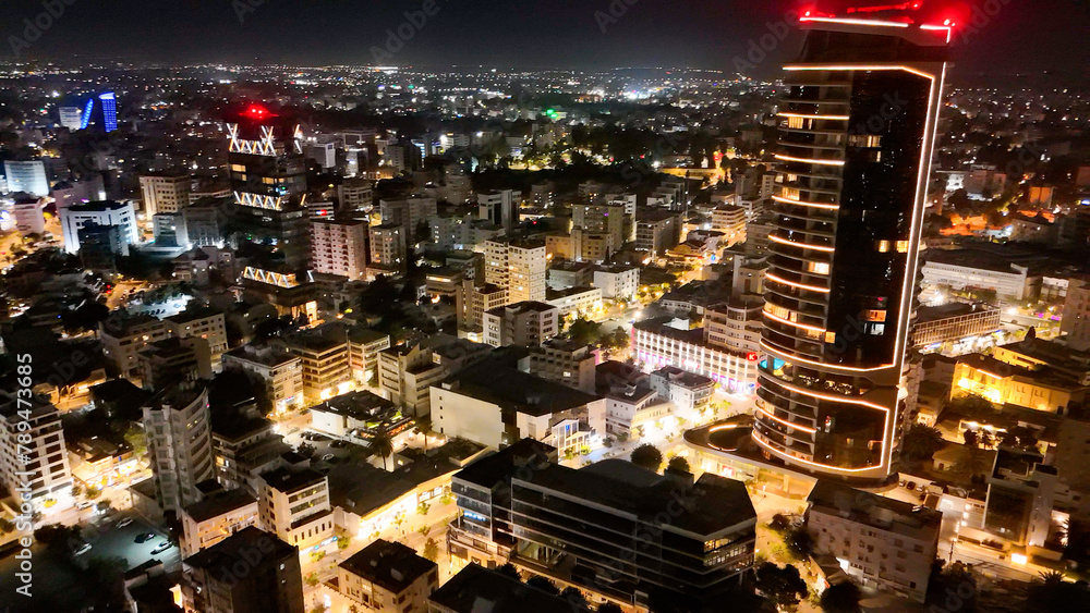 aerial pictures made with a dji mini 4 pro drone over Nicosia by night, Cyprus.