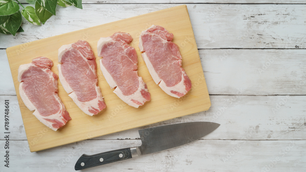 まな板の上の豚ロース肉