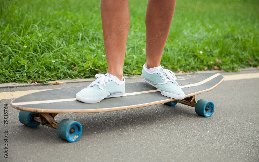 Girl skating on a longboard