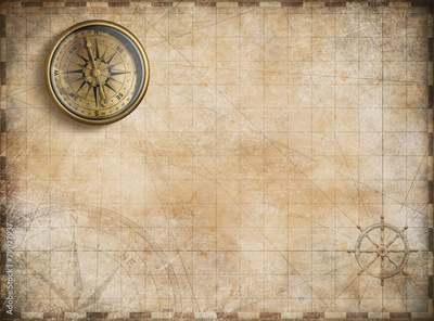 vintage golden compass with nautical map background