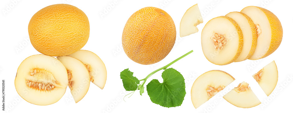 Melon isolated on white background with full depth of field. Top view. Flat lay