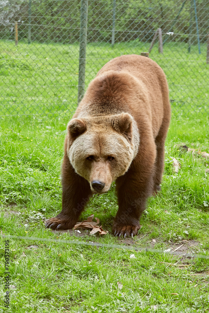 Beautiful close-up of a European brown bear in the animal enclosure.