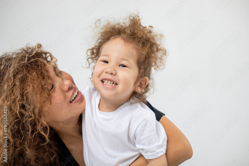 Happy loving family. Mother and her daughter child girl playing and hugging.