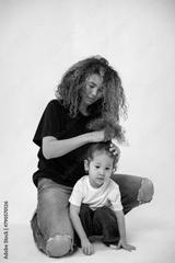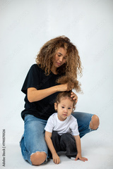 Happy loving family. Mother and her daughter child girl playing and hugging.