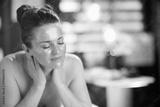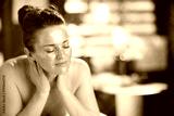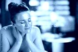 relaxed female in massage cabinet laying on massage table