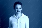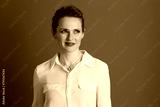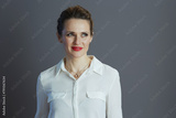 pensive 40 years old business woman looking aside against grey
