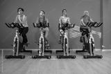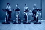 Four women are cycling at the fitness center