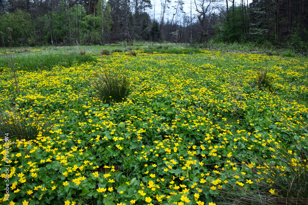 Wiosenne podmokłe łąki i olsy zdobią Kaczeńce (Caltha palustris L.)
