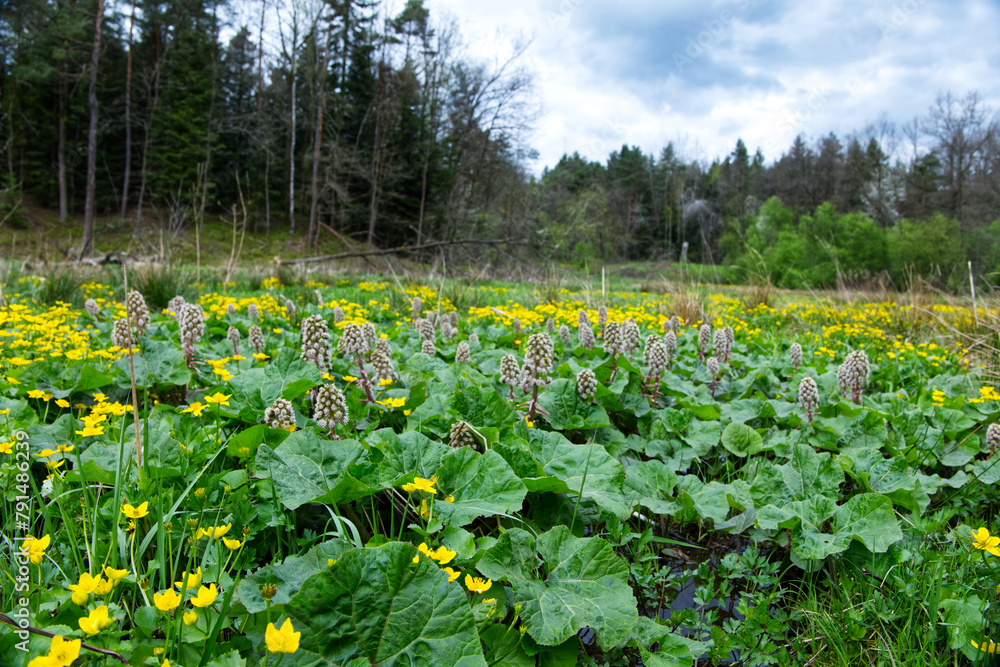 Wiosenne podmokłe łąki i olsy zdobią Kaczeńce (Caltha palustris L.)
