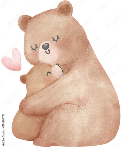 Heartwarming Mother's Day Bear Watercolor Illustration Mom and Baby bond