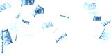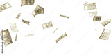 500 Indian rupee notes flying in different angles and orientations isolated on black background