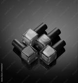 Nail polish Bottles of pastel colors on a dark background with reflections.