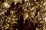 Fall Leaves Surrounding Beautiful Bird, Closeup, Perched in a Sweetgum Tree in California, Setophaga coronata, Yellow-Rumped Warbler, yellow, gray, black