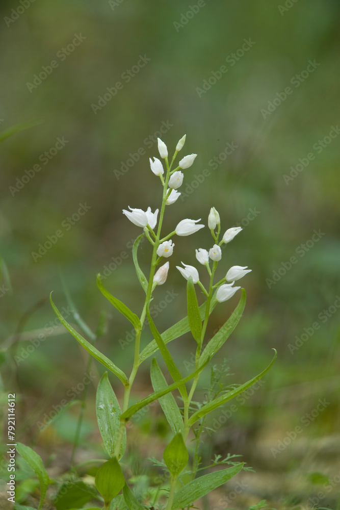 Narrow leaved Helleborine (Cephalanthera longifolia) in Springtime, White Wild Orchid Sardinia, Italy Santulussurgiu, Oristano