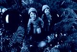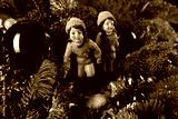 Couple of Figurines Sitting on Top of a Christmas Tree