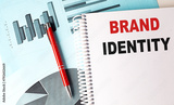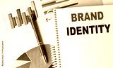 BRAND IDENTITY text on notebook on chart background
