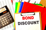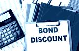 BOND DISCOUNT text on clipboard with calculator and color folder