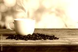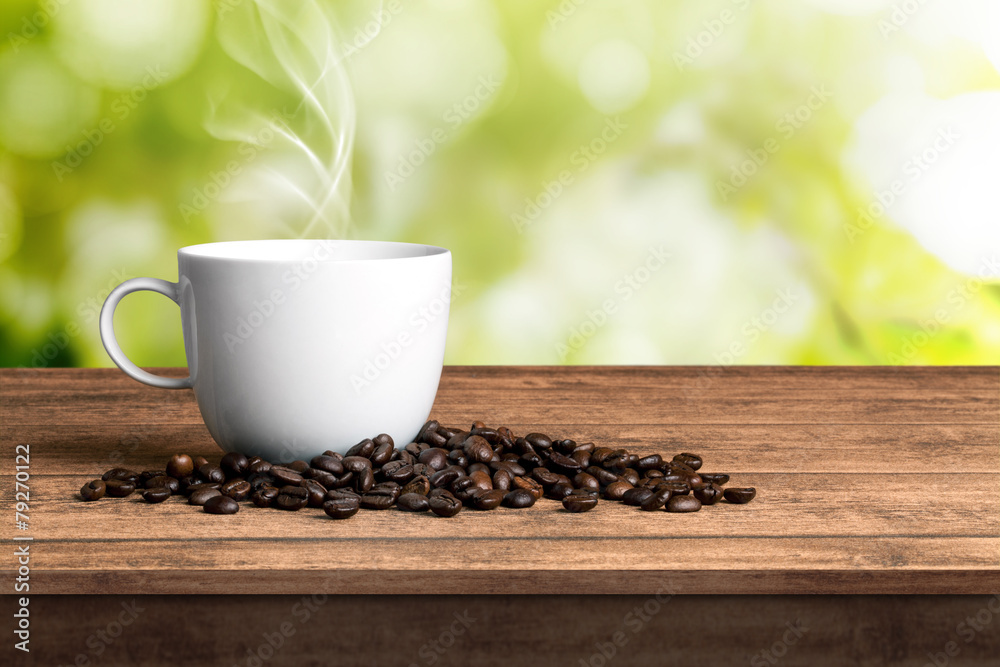 Kaffee Tasse mit Kaffeebohnen Genuss auf Holz Tisch Hintergrund