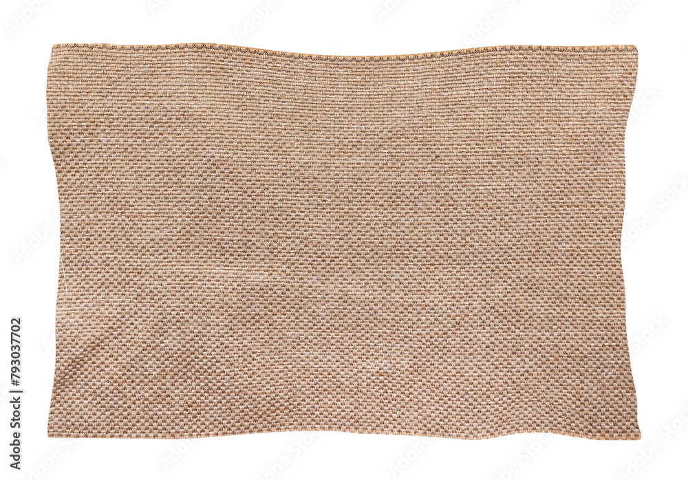 Square torn piece of brown fabric on a white background. Isolate light material for sewing clothes and upholstery of furniture