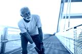 Shot of a mature man experiencing knee pain. mature man experiencing knee pain while exercising outdoors.