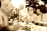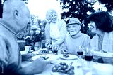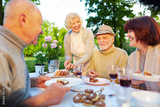 Lachende Senioren bei Geburtstagsfeier mit Kuchen
