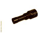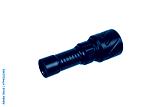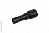 Modern metal LED flashlight in black color. Portable flashlight isolate on a white back